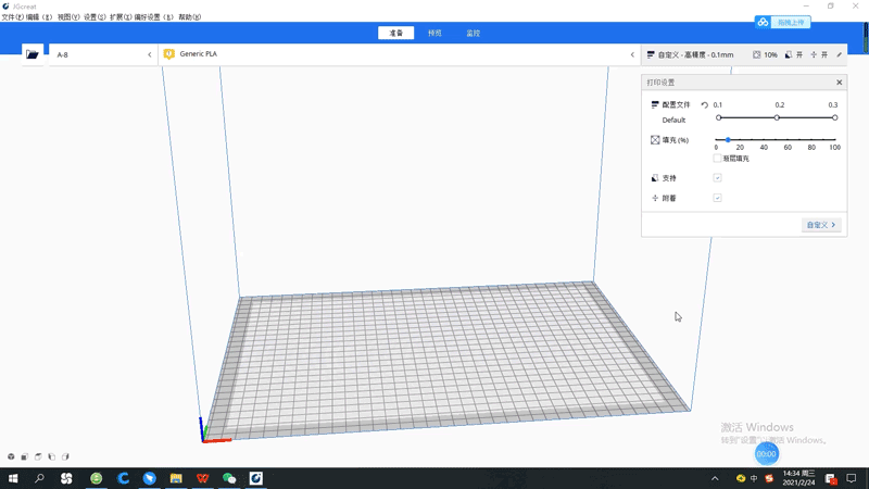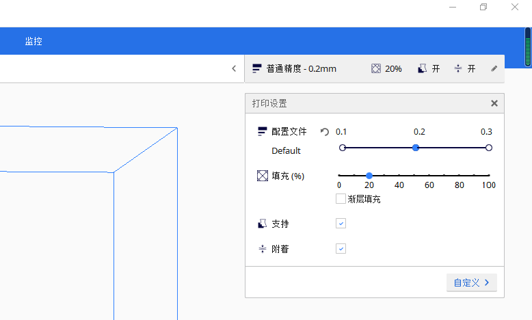 可對于起始層走線寬度進行修改,最高為150%比例,可提高起始層與熱床粘附的效果。