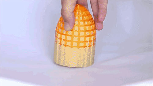 有些模型問題更嚴(yán)重,在我們制造一些如瓶子、鳥籠等擁有殼體結(jié)構(gòu)的模型時(shí),將會(huì)出現(xiàn)內(nèi)部支撐難以拆取的情況。以往我們需要通過粉末打印來完成,現(xiàn)在我們可以通過雙噴頭使用水溶性材料來做支撐,就可以十分方便地取出模型內(nèi)部的支撐,成本將大大降低。