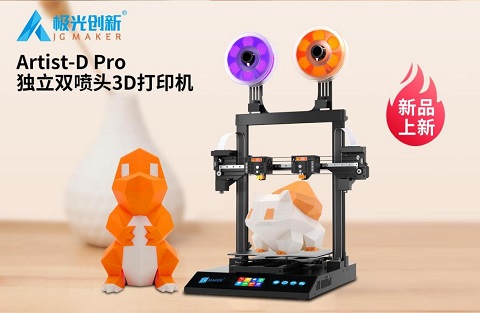 要發(fā)揮更多創(chuàng)意和DIY,非它莫屬:Artist-D pro是極光創(chuàng)新產(chǎn)品線中最年輕的一款產(chǎn)品,獨(dú)立式雙噴頭結(jié)構(gòu)支持4種打印模式,雙噴頭可搭配出各種耗材結(jié)合玩法,支持代碼開源讓創(chuàng)意er盡情打造自己心目中的DIY好助手。快拆噴頭、柔性磁貼、補(bǔ)償調(diào)平等多項(xiàng)前沿功能的整合,讓這款機(jī)器免除了大部分使用過程中的繁瑣,小白和大神都能玩出花樣。