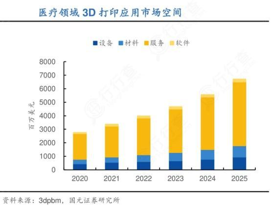 另?yè)?jù)國(guó)外媒體3dpbm數(shù)據(jù)顯示,2020年全球醫(yī)療領(lǐng)域3D打印市場(chǎng)規(guī)模約28億美元,2025年有望達(dá)到67億美元。