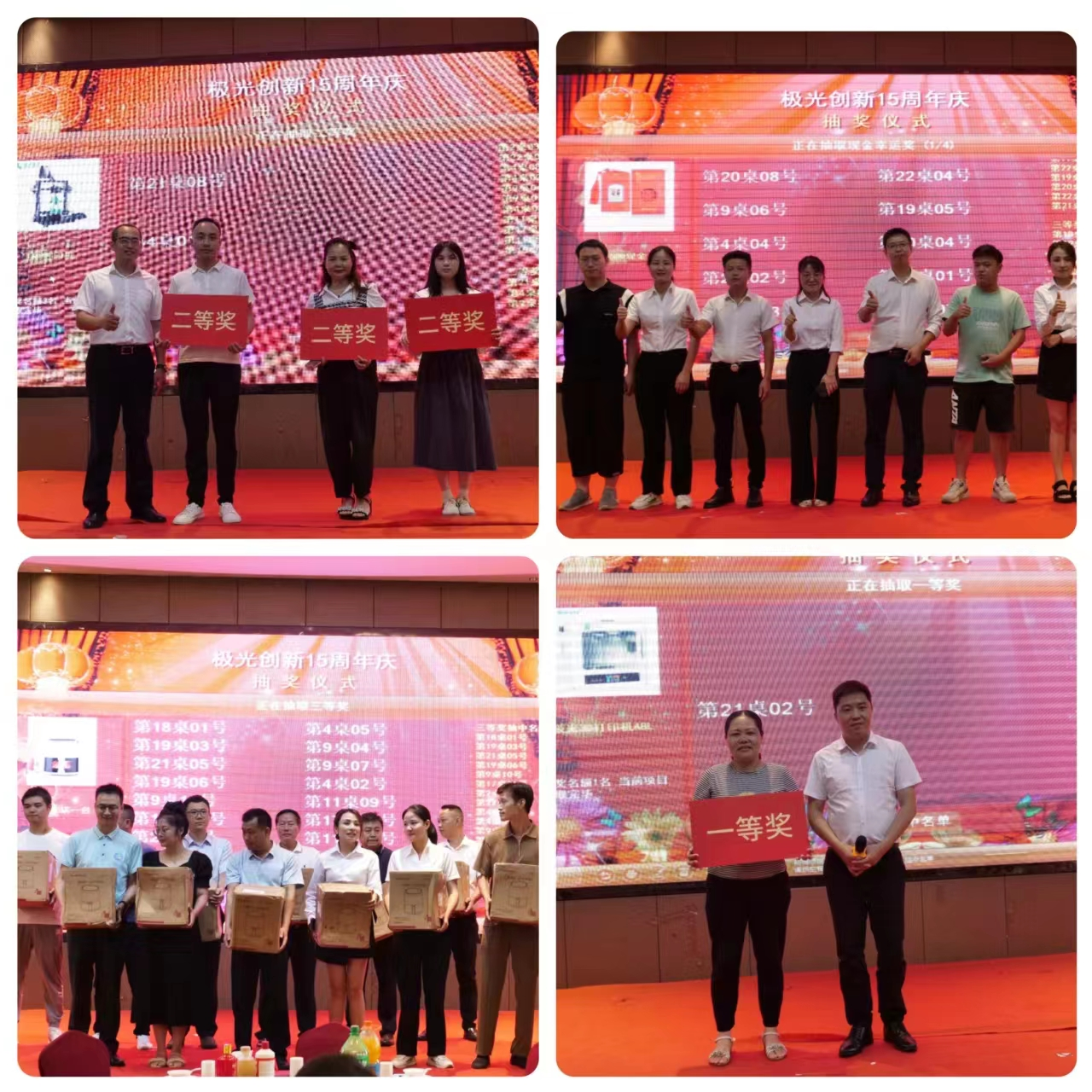 慶典儀式上高潮迭起,為了感恩十五年來與極光創(chuàng)新風(fēng)雨同舟、共度崢嶸的家人們,活動穿插了令人心跳加速的抽獎環(huán)節(jié),豐富的現(xiàn)金紅包、實用家電、王牌3D打印機(jī)等獎品再次把活動氣氛推向了一個新的高度,讓大家都滿載而歸!