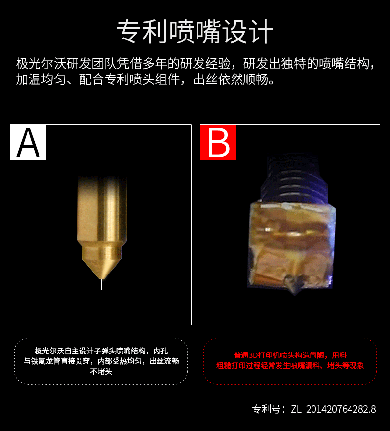 極光爾沃A8S作為一款定位于萬(wàn)元價(jià)位的工業(yè)機(jī),在各項(xiàng)性能上都做到了極致,它既能滿足手板制作的需求,也在成本上做得了極致控制。與我們的科技機(jī)型A 7不同,A8S每一個(gè)零件都是為3D打印效果服務(wù),設(shè)計(jì)之初,我們希望首先能夠讓大多數(shù)需要的人享受到3D打印帶來(lái)的便利,解決有無(wú),再讓它們變得“更懂人心”。這就是A8S,一款純粹的具有強(qiáng)大實(shí)力的3D打印機(jī)。