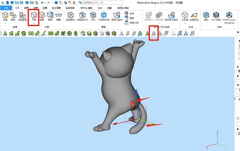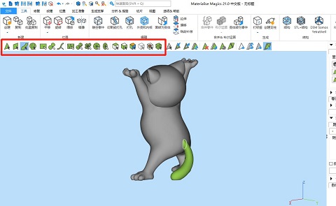 為了提高打印效果,往往我們需要對復雜模型進行分割變?yōu)楹唵文P蛠泶蛴?,再進行拼裝。要對模型分割的話,推薦使用Magics來執(zhí)行工作,這個軟件有數種切割方式,我們以最近很火的托舉貓模型為例子,介紹下其中常用的3種,內容較多,將分為2期內容說明。