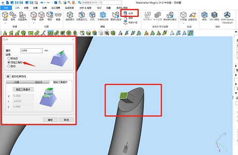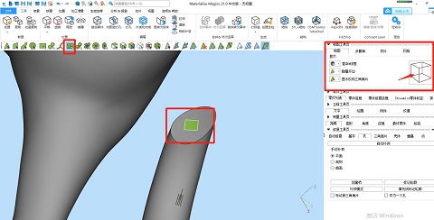 ⑤設計插銷,選擇“框選標記并重畫網格”功能,選擇一個模型的接觸面并框選出插銷大小和形狀。可以借助視圖工具頁來精準調節(jié)視圖方向。