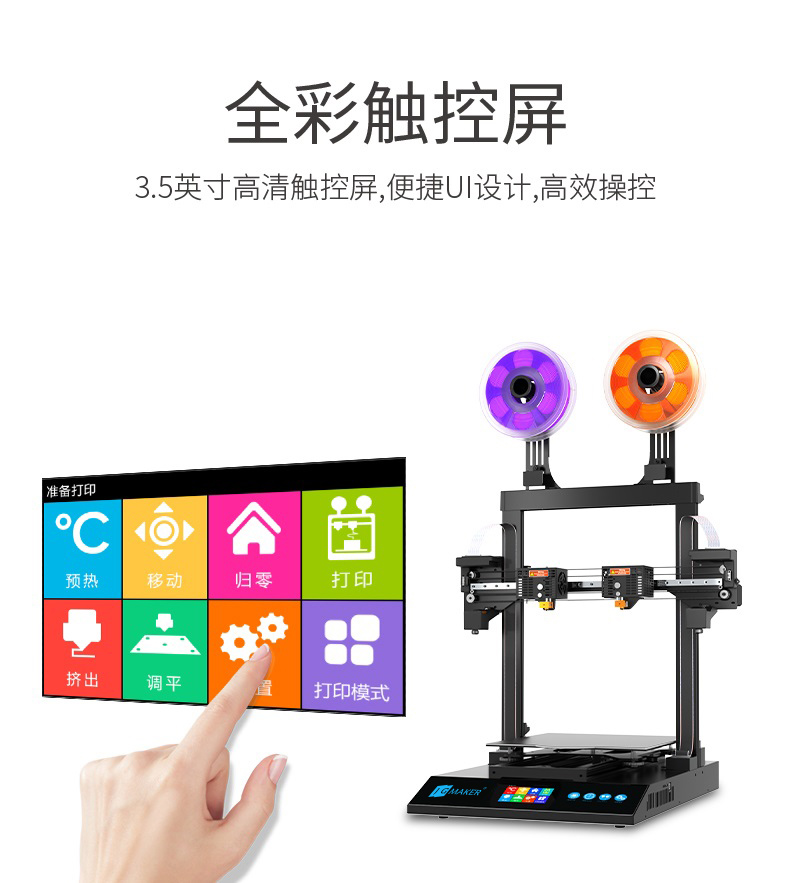 耗材傾向性:PLA/ABS/TPU/木質(zhì)等控制面板:全彩觸控屏