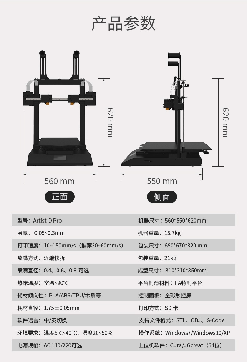 電源規(guī)格:AC110/220可選上位機軟件:Cura/JGcreat(64位)